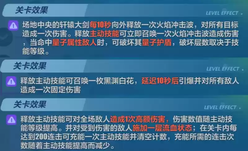 战斗课程共有三种类型:普通的战斗课程、精英怪的挑战课程和BOSS战的最终试炼。每个区域内的战斗关卡都有着不一样的关卡效果,需要根据当前关卡效果来选择合适的队伍来出战。