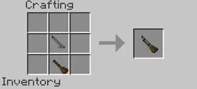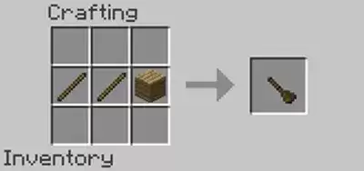 1、先制作枪托,需要用到木棍和木块,按照下图的位置摆放合成。