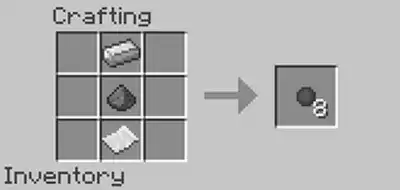 2、再去做枪管,要用到铁块和打火石,按下图位置摆放合成。