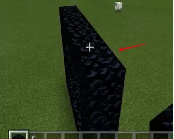 2、然后我们使用黑曜石搭建一个宽4高5的空心的门框,