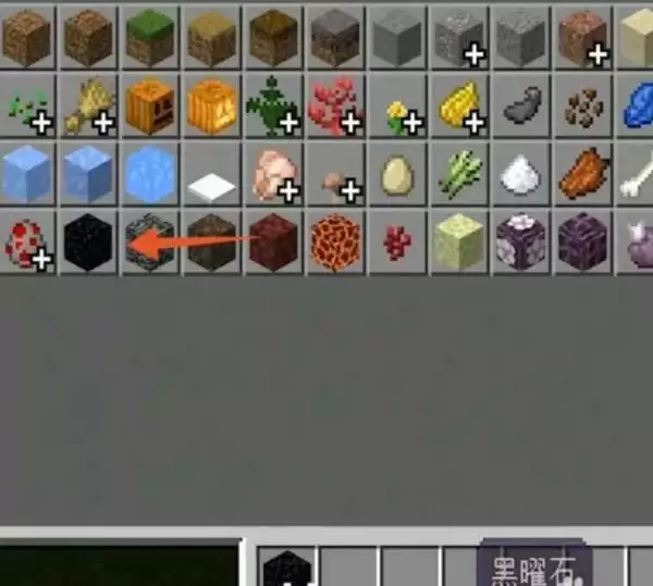 1、首先我们需要将材料准备好,需要十四个以上的黑曜石和一个打火石。