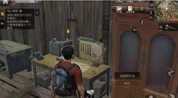 1、进入到私人营地,在自己家里也可以手动打造护甲台。