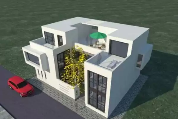 1、首选我们随便找一个现代别墅的图来进行制作。(最好是立体的)