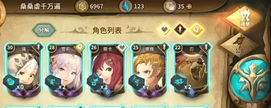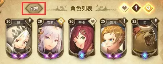 分解在游戏右上角的魂册上面,首先我们需要进入魂册,然后在上面可以发现分解两个字,点击这个分解,就会发现所有的角色出现蓝框。