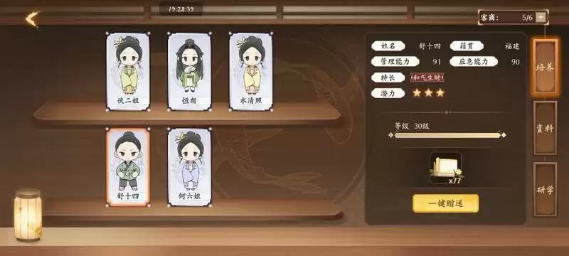 攒100能量重新随机客商星级和特长,可选择替换或放弃,一小时回复4能量,看广告回复50能量有次数限制。