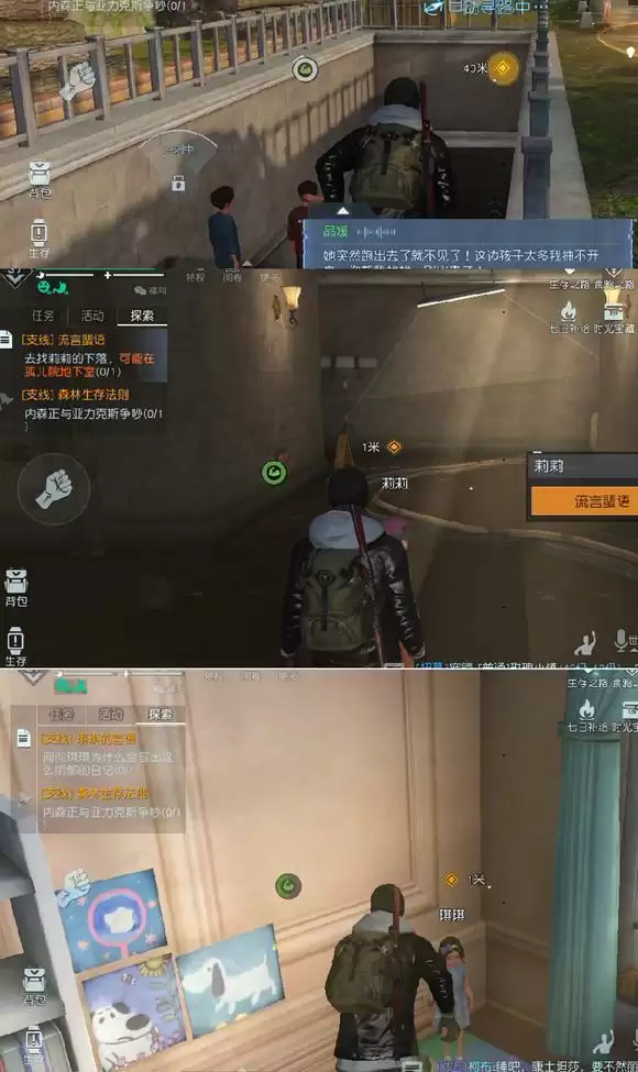 任务名叫探险小分队,探险?我喜欢啊,走起(后来我才知道,就在两个房子之间晃悠叫什么探险)。去找品媛。