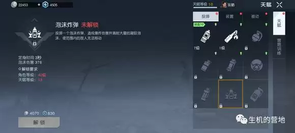 泡沫炸弹:这个投掷物能够将爆炸范围内的敌人无法移动。