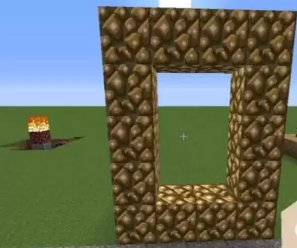 2、我们先找一块空地,然后使用萤石搭建出一个长5宽4的门。