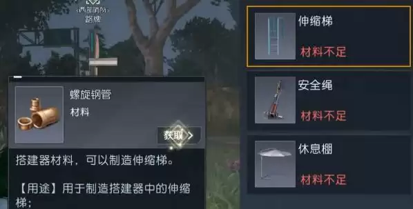 1、我们需要前往中部平原的【西部哨所】,点击左下角的锤子,然后制作伸缩梯。