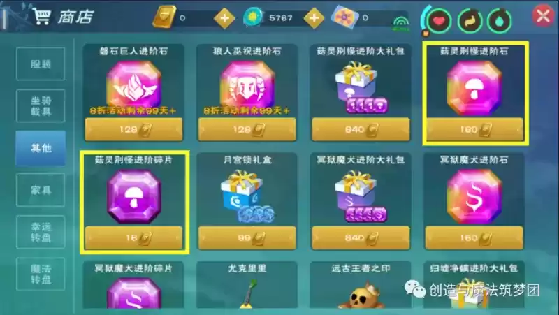菇灵荆怪进阶石:菇灵荆怪进阶3-6阶必要材料,3阶需要12个,4阶需要25个,5阶需要30个,6阶需要35个,累计102个。目前菇灵荆怪进阶石主要通过商城购买,160点卷/个,推荐有优惠折扣的时候购买,毕竟进阶花费还是有些大的。