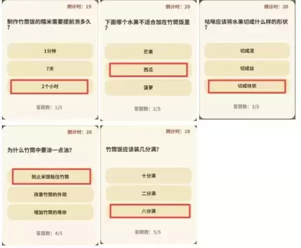 答案:竹筒、糯米、水果