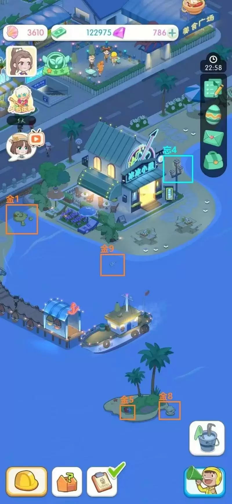 2、今天更新的彩蛋区域有金沙湾、河畔花园、望海岩、蓝梦街。