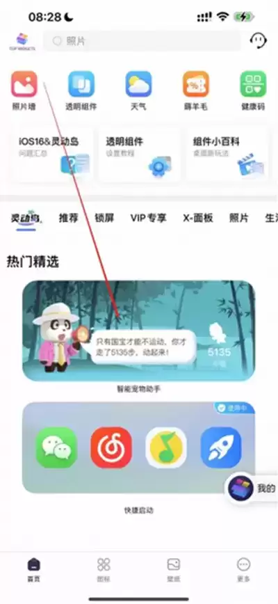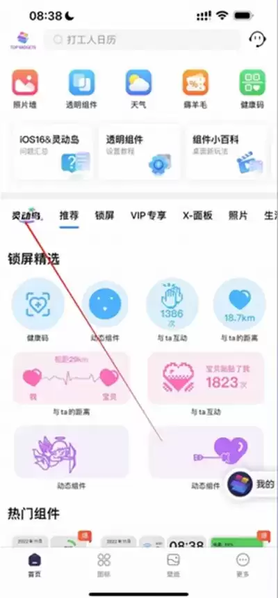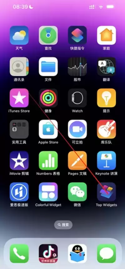 1、首先我们打开手机,点击万能小组件(Top Widgets)。