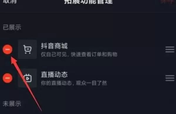 6、最后我们点击抖音商城左侧的红色减号就能关闭掉了。