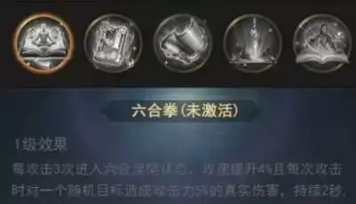 每攻击3次进入六合涅槃状态,百分比提升攻速且每次攻击对随机目标造成攻击力百分比真实伤害,,在神功秘境提升100%