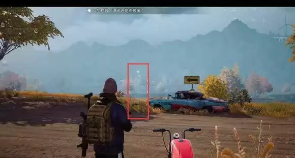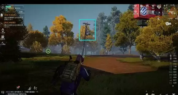 拿到这两个物资之后,我们走出加油站,继续向传送点进发,可以看到面前的电线杆上也有一个悬垂物资。