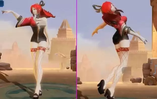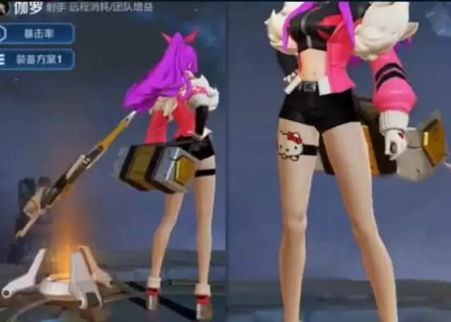 那个时候的伽罗动作还是这个动作,但是身上的配件有所不同,头上有一个黑色的墨镜,下身也不是穿的皮裤,而是短裤陪着黑色丝袜,看起来非常的性感。当时的造型一出就受到了很多玩家的青睐。很多玩家都纷纷期待着正式上线就购买,然而到了正式官宣的时候,造型却变了,于是就有很多玩家不满了。