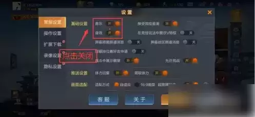点击关闭后,游戏就不会有音乐和音效声音了,即关闭成功(图片中圈红的部分)