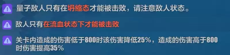 而在挑战课程中,还给玩家额外增加了限制和难度。由于敌人只有身上挂着流血状态才能被击杀,因此建议队伍中携带新角色女武神·热砂(苏莎娜)或格蕾修等可以轻松施加流血异常状态的角色。
