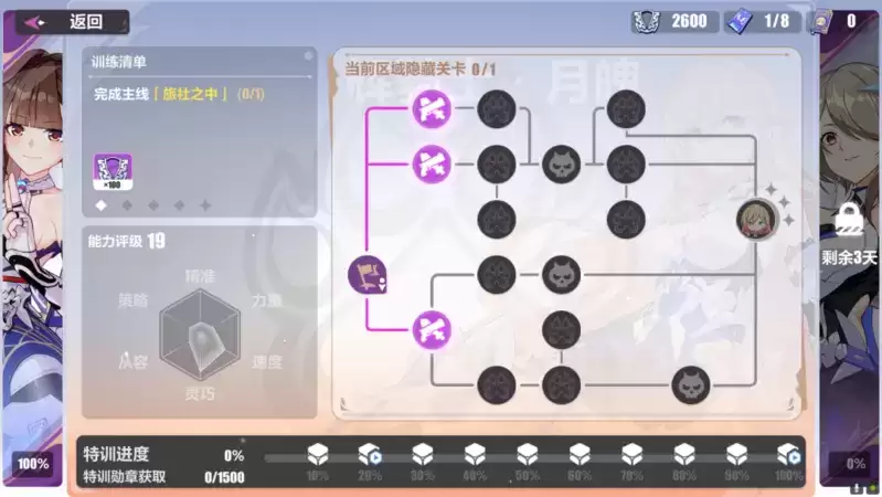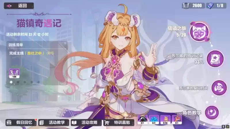 本次活动共分为三个模块,活动的主线章节:「猫镇之旅」;闯关挑战关卡:「苏莎娜的特训记录」;角色养成:「苏莎娜的复习时间」。由于闯关挑战关卡是主要的奖励来源,所以将会着重讲解。