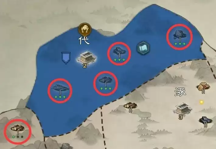2、以出生州【河北】为例,点击【地图】,选择需要占领的资源点,将自身的占矿数中【三级矿】数量补至14座,其中三级铁矿3座,三级石矿5座,三级木材厂3座,三级农场3座