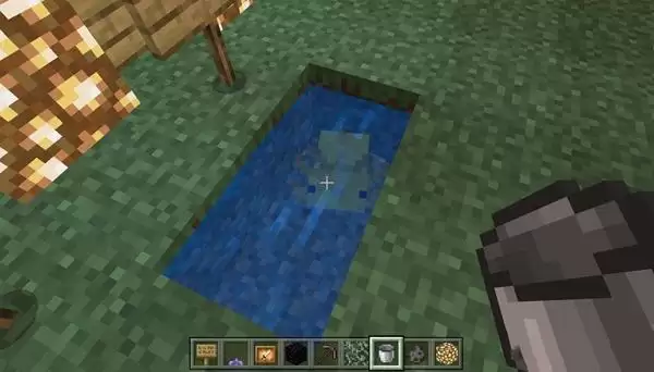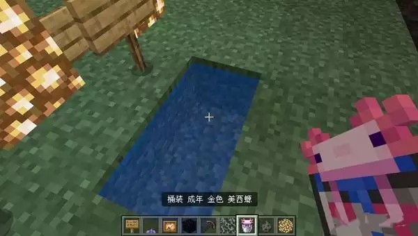 3、发现美西螈后直接用铁桶点击它就能将其装入桶中驯服了。