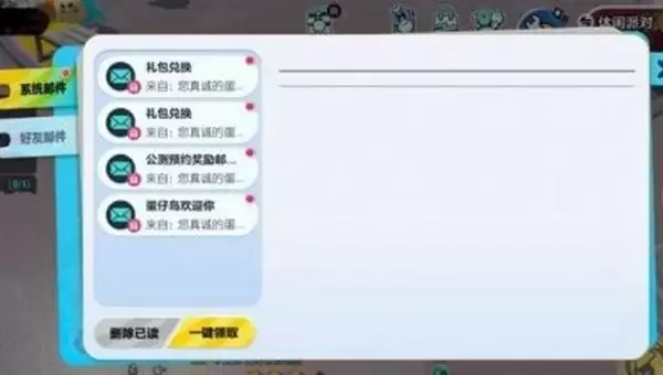 4、在邮箱中就能领取刚才兑换的礼包了。