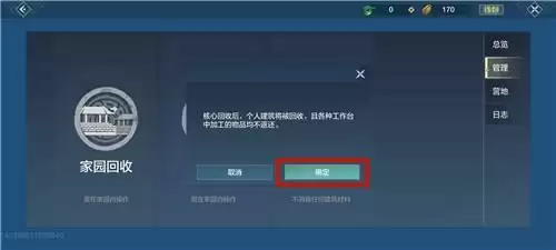 3、个人建筑会被回收,工作台中的物品不会返还,记得先收取,再点击确定。