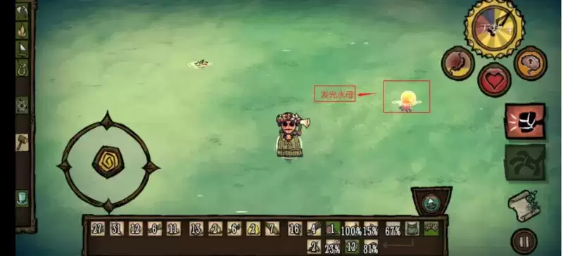开始探索其他岛屿,出了岛屿后近海会遇到海带,鱼籽都可以收集起立做为食物储备,鱼籽就可以直接吃了(只加1点血和饱食度),近海是绿色的(基本是靠着岛屿的旁边,也有几率是珊瑚礁),中海是浅蓝色的,深海是黑蓝色的,但我们遇到浅海咱们就可以顺着去找到陆地岛屿。