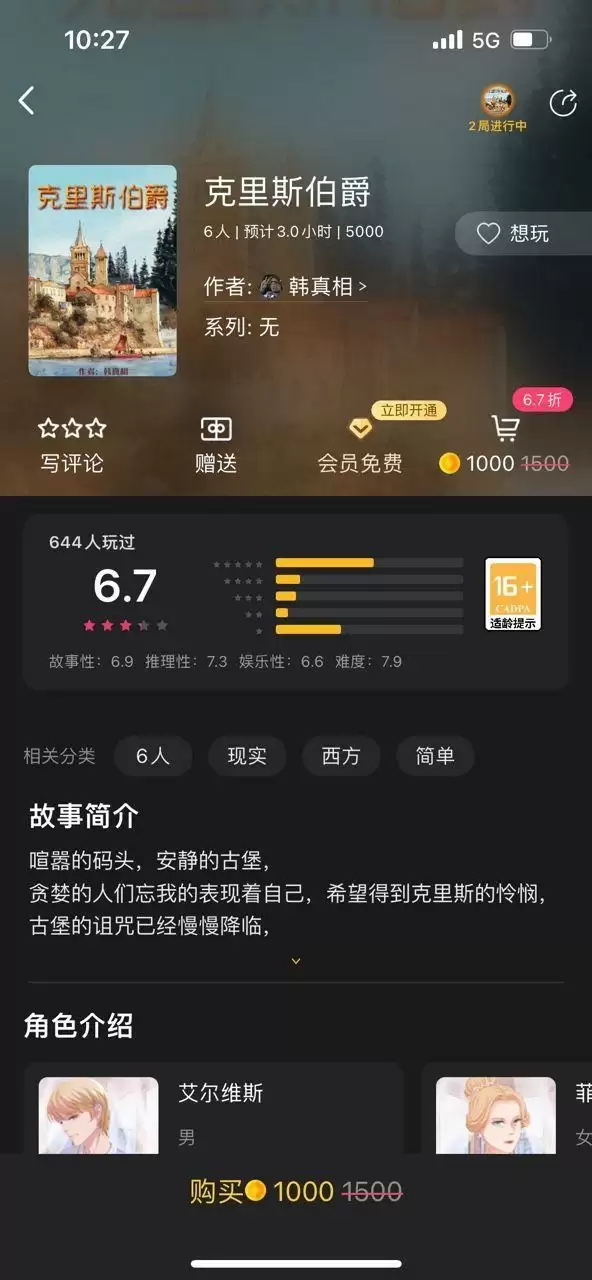 百变大侦探克里斯伯爵是一个西方现实6人剧本,喜欢西方题材的小伙伴可以加入进来,在这个喧嚣的码头,贪婪的人们忘我的表现自己希望得到克里的怜悯,在这个古堡里发生了各种诅咒,我们要试探其中的各种秘密!
