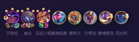 2星沙弥拉加2星盖伦的情况下可以考虑上9大成阵容。9人口可以上EZ增加伤害或者上其他五费卡补强质量双螃蟹双稻草人都可以。