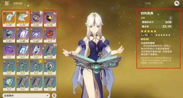 1、四风原典和匣里日月,凝光当主C的时候可以用,提高输出和爆发。