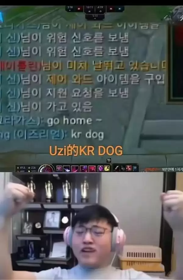 3、UZI在打韩服的时候也发出过krdog,虽然当时的观众不理解但是现在再来看觉得UZI做得还是可以的。