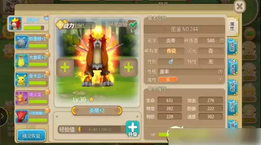 最后换回会催眠的精灵一直催眠和投掷精灵球即可。如果你的催眠精灵速度比炎帝慢的话,建议使用比比鸟的飞沙脚降低炎帝的命中再进行捕捉。