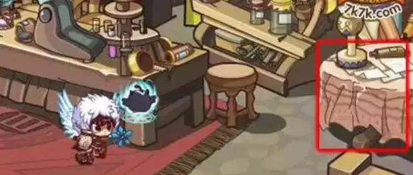 在试验工坊中有一张盖着桌布的桌子,点击它就会出现一堆小人在桌底大家,等它们撤退了我们就能获得魔法石了。