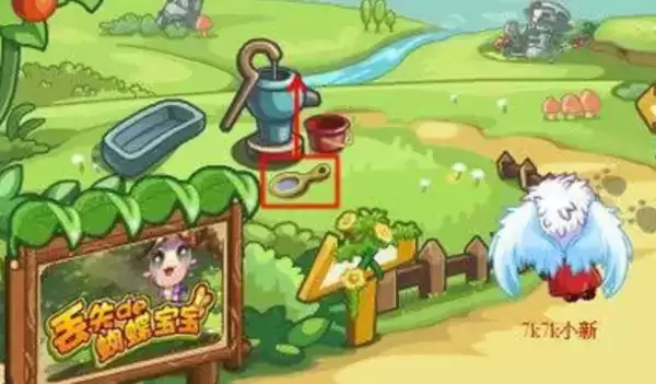 宠物园这里有一个抽水机,我们点击抽水机抽四五次,然后把红水桶中的水倒入水槽中就能获得魔法石。