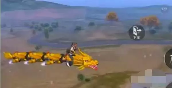 3、接着我们来到空旷的地方就能使用舞龙载具飞上天空。