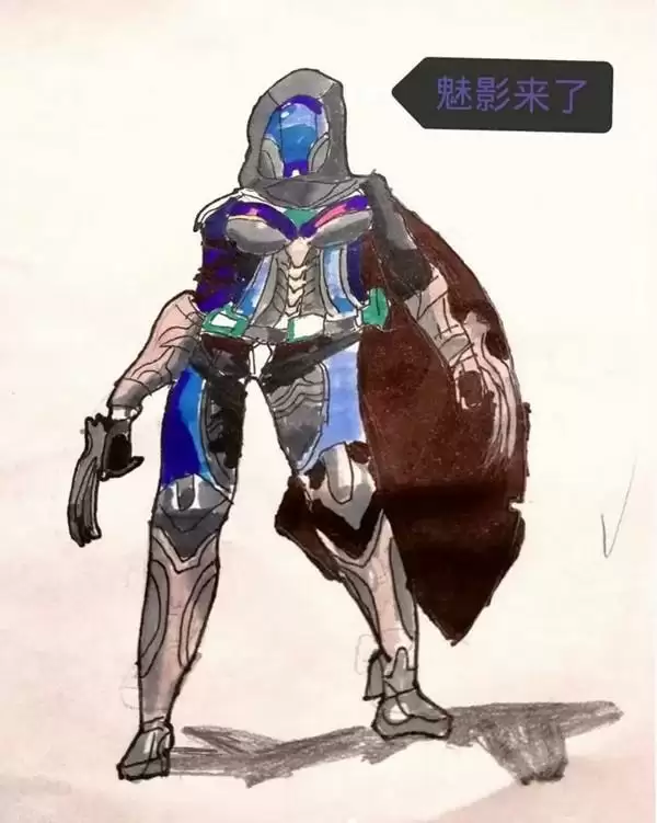 4、接着把魅影的披风画成像翅膀一样的感觉,就好像在空中飞行。