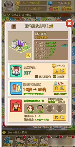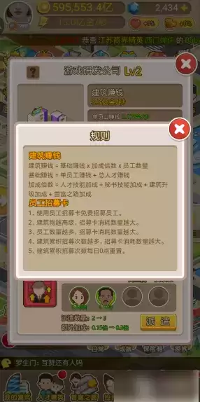 因为各种公司是玩家赚钱的基础,而只有员工数量提升上去,赚钱速度才会加快。然而,随着员工数量的增多,招募所需要花费的金币剧增,甚至超过了员工带来的收益。要想解决这种困境,有三种方法:升级建筑、入驻人才或者使用招募员工卡来免费招募员工。