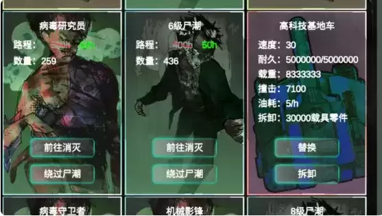 然后找高等级npc兑换武器,“交流”,拿物资,没npc就一直探索一直刷,或者重新进地图。然后打到一线城市,70npc有火麒麟和变形衣顶配,拿完多刷一点,大概30-50件就可通关,算上特殊的特殊点。