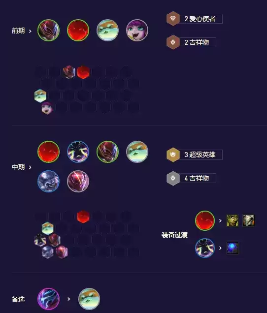 英雄强化*快乐虹吸,2费强化推荐坚如磐石;黄金门票、dd街区基本无脑拿,赌狗阵容必备,飞升、珠光莲华、公理圆弧都是薇古丝的*输出海克斯,中期能帮忙稳血,后期还能提升上限;吉祥物之心可以八级开出6吉祥提升也很大。