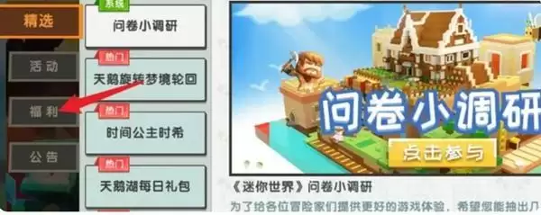 2、然后我们在里面的右侧找到【福利】选项点击进去。
