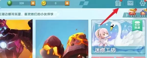 1、首先我们打开手机中的迷你世界,然后点击右上角的【礼物】按钮。