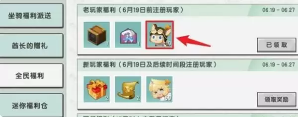 3、然后在定时登录福利中我们可以领取一定数量的坐骑碎片。