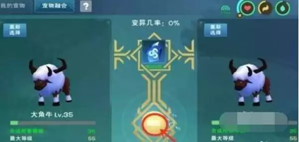 1、首选我们需要进入游戏去抓两只【大角牛】,然后将它们的等级提升到35级,准备好融合魔法石。