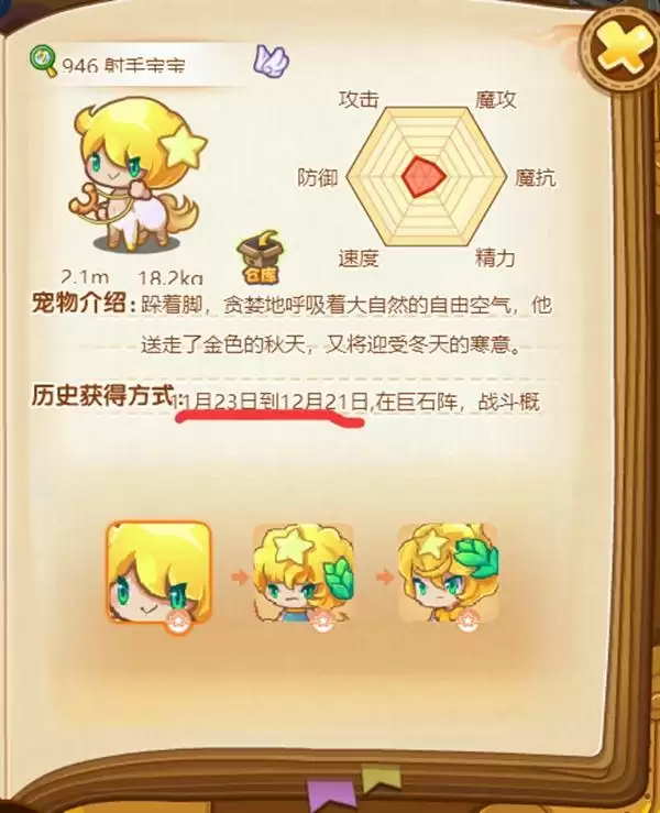 1、我们只有在11月23日~12月21日期间前往巨石阵才能捕捉到射手宝宝。