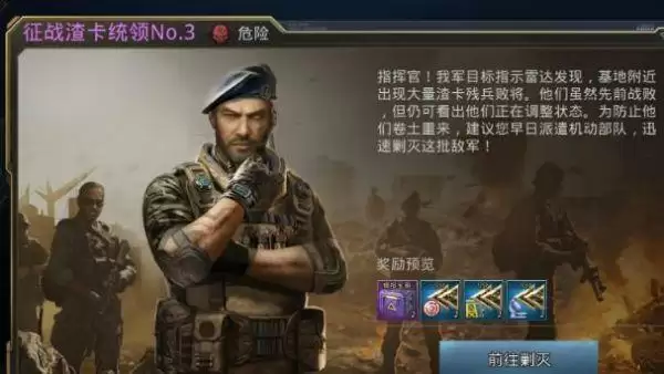 情报搜索是我们获取资源的一个重要手段,情报分为了物资收集、援救友军、剿灭敌军等,一般而言物资收集是*简单的情报任务,没有难度不需要作战;援救友军的任务视具体难度而定,但总体来说也是不难的。至于剿灭敌军,这里就得说说其中的高危级的情报任务了。