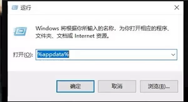 1、我们在电脑桌面上按下【WIN+R】键,然后输入【%appdata%】点击确定。