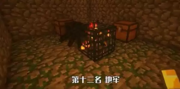 地牢是由苔石和圆石组成的,有箱子和刷怪笼。
