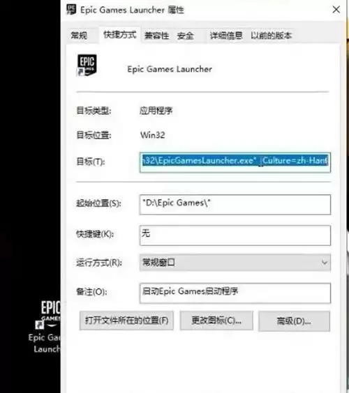 3、我们在【目标】的后面输入 -Culture=zh-Hant,前面需要加上一个空格,然后重启游戏就是中文了。
